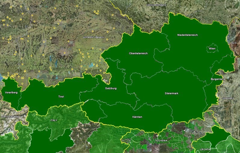 با وجود این هم اکنون مناطق نسبتاً زیادی در کشور اتریش در حال کشت محصولات تراریخته هستند که در شکل زیر قابل مشاهده است، البته باید گفت که بر روی همه این محصولات در بازار مصرف این کشور «برچسب تراریختگی» اعمال می‌شود.