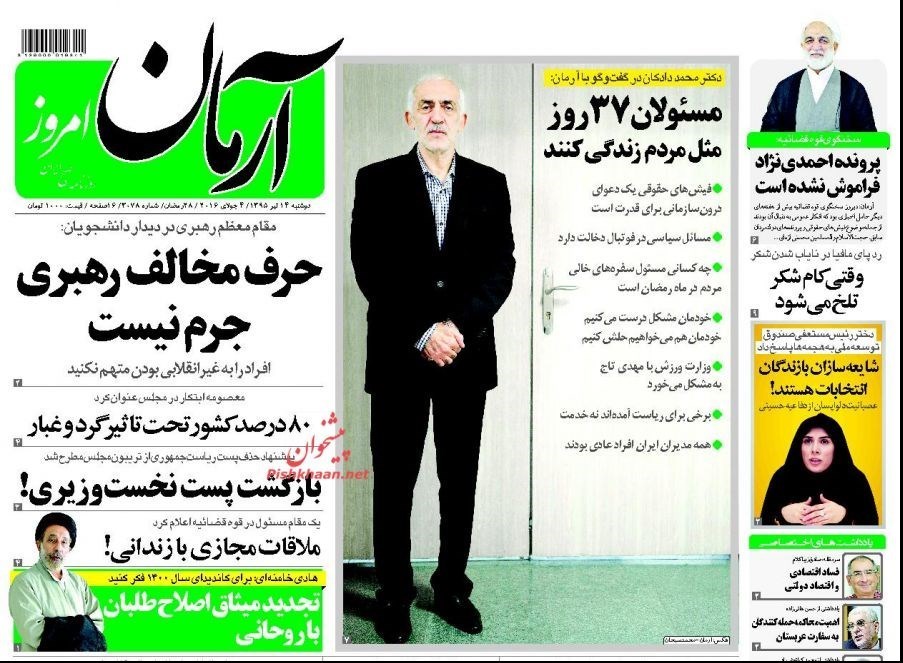 تصاویر صفحه اول روزنامه‌های دوشنبه 14 تیر