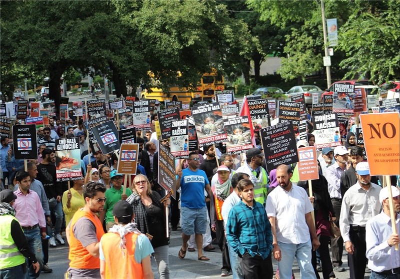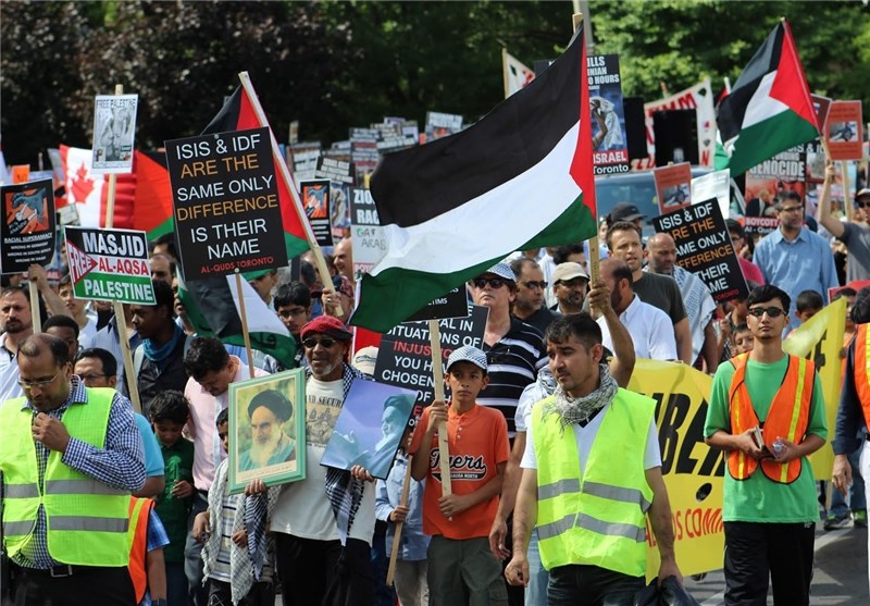 به گزارش گروه بینالملل خبرگزاری تسنیم، در روز بینالمللی قدس هزاران نفر از مردم شهر تورنتو در پارک کوئینز تجمع کرده و با هدف محکومیت اقدامات رژیم صهیونیستی و همچنین اعلام همبستگی با مردم ستمدیده فلسطین به سمت کنسولگری آمریکا حرکت کردند.