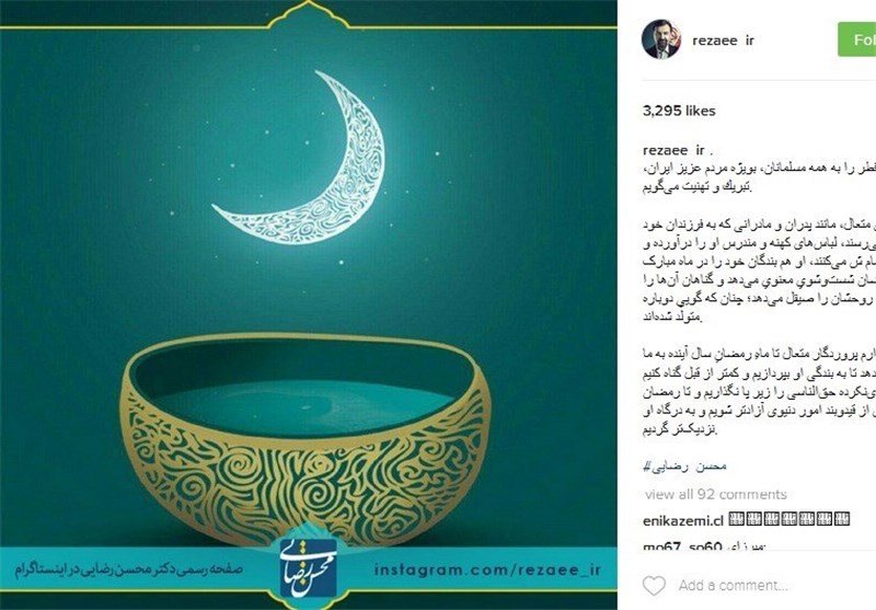 عید فطر را به همه مسلمانان، بویژه مردم عزیز ایران، تبریک و تهنیت میگویم.