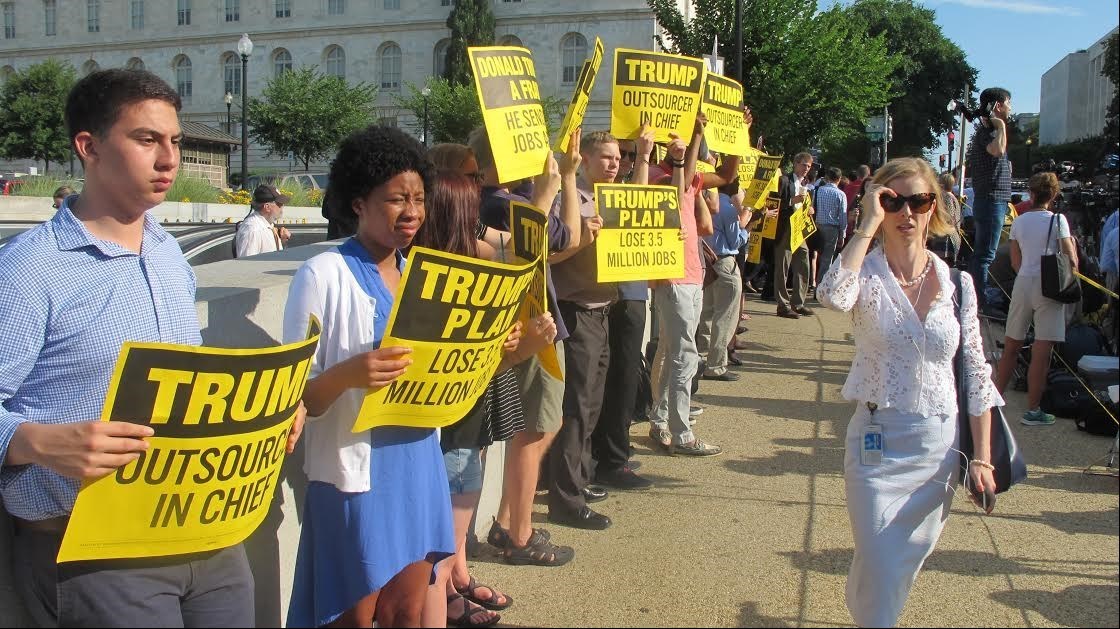 مردم حاضر در این تجمع با در دست داشتن نوشتههایی نسبت به وضعیت بیکاری 3.5 میلیون نفر در آمریکا و سیاستهای ترامپ بهشدت مخالفت کردند.