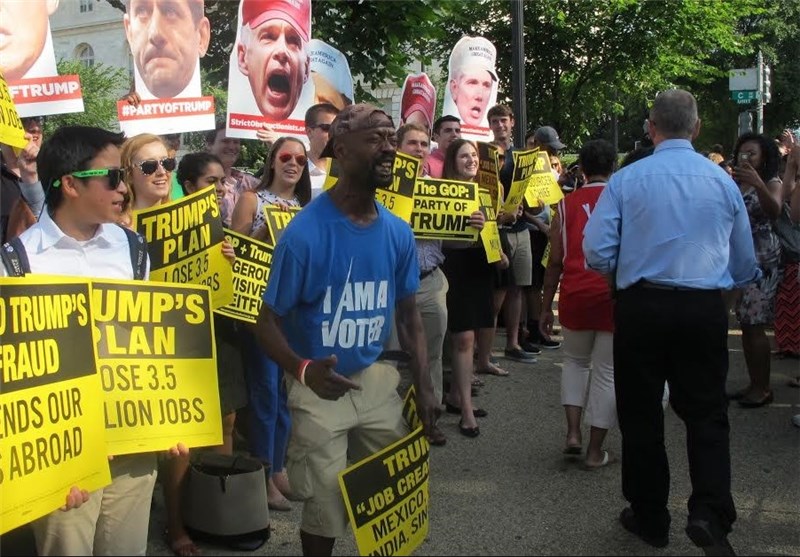 به گزارش خبرنگار خبرگزاری تسنیم از واشنگتن، روز چهارشنبه تعداد زیادی از مردم آمریکا مقابل ساختمان حزب جمهوریخواه آمریکا که در خیابان مجاور کنگره قرار دارد تجمع کرده دست به تظاهرات زدند.