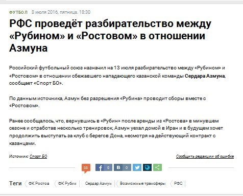 این سایت روسی از رایزنی باشگاه روبینکازان با باشگاه روستوف بدون اجازه سردار آزمون خبر داده است، هر چند فدراسیون فوتبال روسیه در جلسه روز 23 تیر ماه وضعیت این بازیکن ایرانی را روشن خواهد کرد.