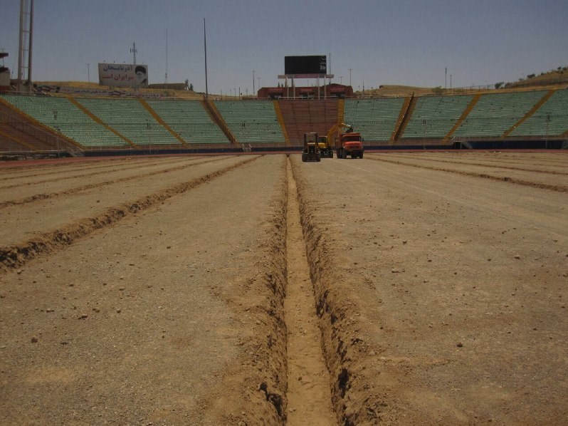 پس از پوشاندن این کانالها و فیلترریزی، لولههای آبیاری و لولههای گرمایشی که حدود 35 کیلومتر است و به طولانی شدن عمر چمن کمک میکند، بهزودی در زمین قرار داده شده و پس از انجام سایر کارهای زیرسازی، چمن پهن خواهد شد، چمنی که قرار است از شرکت ترکیهای که تحتِلیسانس شرکت آلمانی کار میکند، وارد تبریز شود.