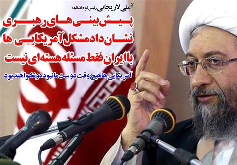 رئیس قوه قضائیه با تأکید بر "آمریکایی‌ها هیچ‌گاه دوست ما نبوده و نخواهند بود" گفت: آمریکایی‌ها با این رفتارهای دوگانه در قبال تروریسم چگونه گمان می‌کنند که حرف‌هایشان درباره مقابله با تروریسم باورپذیر باشد؟