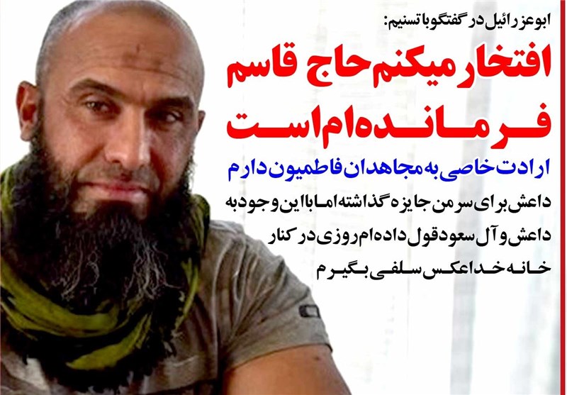 ابوعزرائیل نیروی رزمنده علیه داعش و نیروهای تکفیری گفت: داعش برای سر من جایزه گذاشته اما با وجود این، به داعش و آل‌سعود قول داده‌ام روزی کنار خانه خدا عکس سلفی بگیرم.