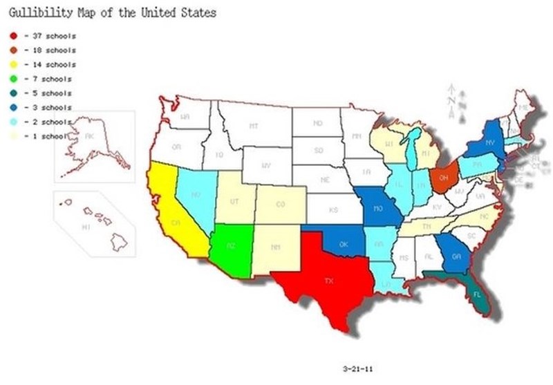 پراکندگی و تعداد مدارس جماعت گولن در آمریکا