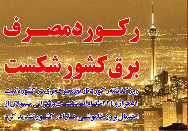 روز گذشته رکورد تاریخ مصرف برق در کشور با ثبت 51 هزار و 224 مگاوات شکست و نگرانی مسئولان از احتمال بروز خاموشی ها را در کشور تشدید کرد