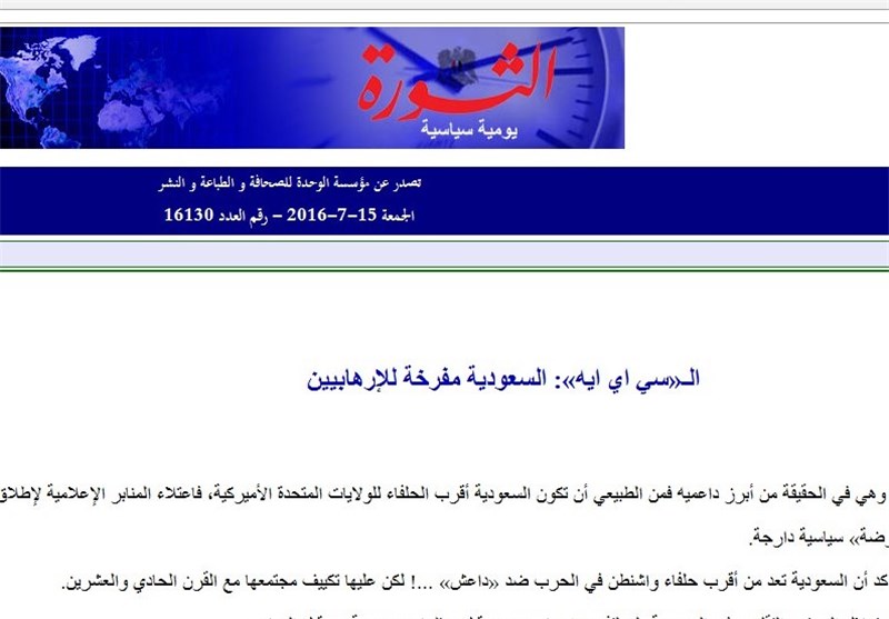 این روزنامه با اشاره به نمایشی بودن اقدام آل سعود در تشکیل ائتلاف ادعایی اسلامی برای مبارزه با تروریسم تصریح کرد تروریسم به 34 کشور برای مبارزه با آن نیاز ندارد، بلکه به یک فرمان پادشاهی نیاز دارد تا مدارس و دانشگاههای سعودی که به تدریس ایدلوژیهای وهابیت را تدریس میکنند، بسته شود و نیز کسانی که به صدور فتاوای تکفیری میپردازند، مهار شوند و صندوقهایی که در پوشش مسائل خیریه به تامین مالی تروریسم میپردازند، بسته شوند.