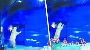 بر اساس گزارش آبزرور، این خرس قطبی که «پیتزا»(Pizza) نام دارد در یک پارک اقیانوسی در داخل مرکز خرید «گرندیو» در گوانگژو به نمایش بازدیدکنندگان گذاشته شده است.