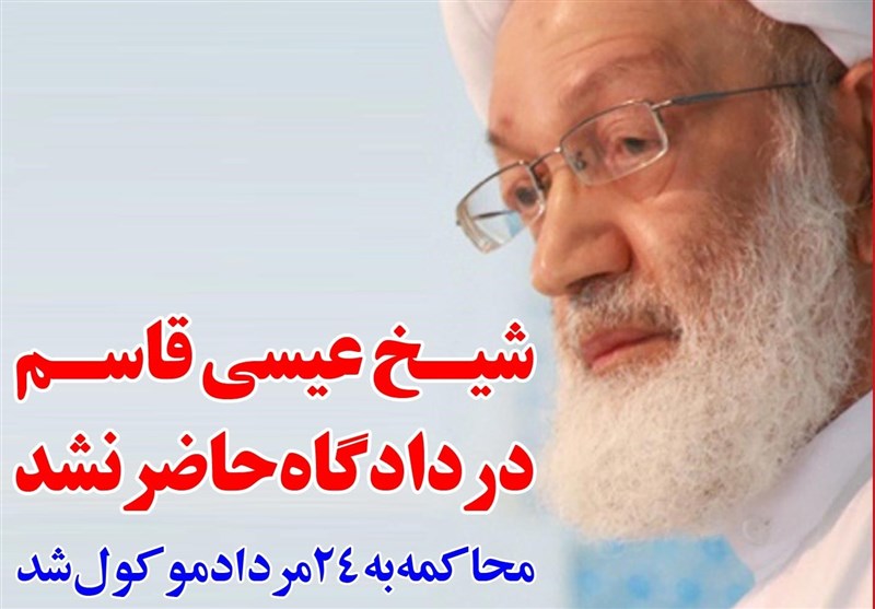 دادستان عمومی بحرین اعلام کرد که به‌دلیل عدم‌حضور شیخ عیسی قاسم در دادگاه بررسی پرونده وی به 24 مردادماه موکول شد.