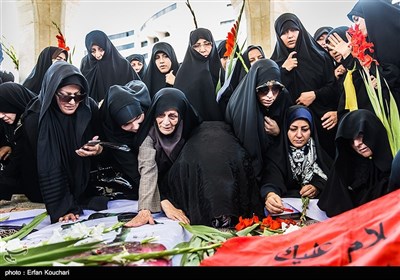 پیکر شهید گمنام در حوزه علمیه خواهران نهاوند آرام گرفت