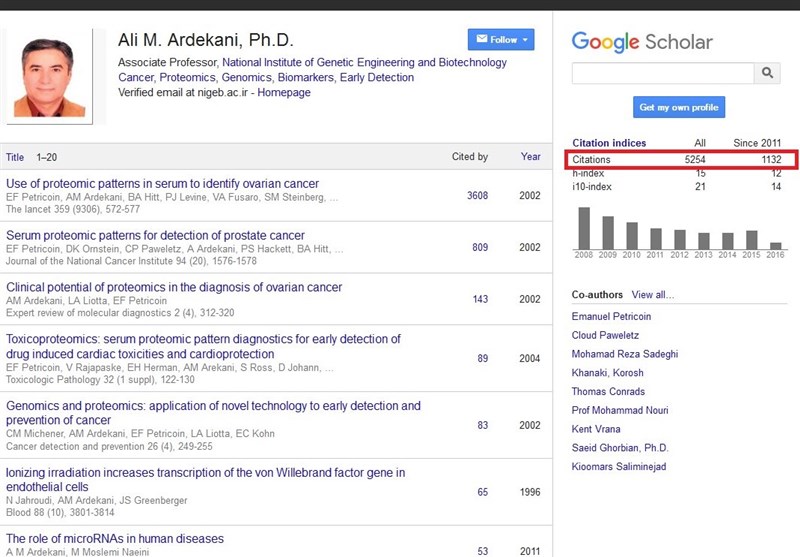 انبوه تعداد ارجاع به مقالات علمی دکتر متولیزاده اردکانی که از موارد کمنظیر ایران است