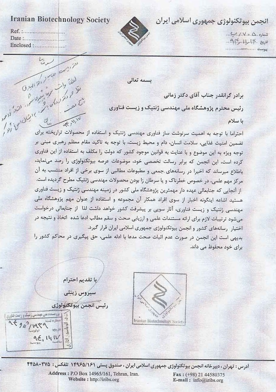 مخالفت دانشمند برجستهای چون دکتر متولی زاده اردکانی با تجارت محصولات تراریخته و مصرف عمومی آن، سبب بیآبرویی «تجارتخانههای تراریخته» شده بود. انتشار این مقاله علمی از سوی این دانشمند برجسته به مذاق تاجران و مدافعان تراریخته خوش نیامد. این جریان تمام تلاش خود را به کار گرفت تا خیزشی را که در برابر تجارت تراریختهها، بهوسیله این دانشمند متعهد کلید خورده بود متوقف کند. تصویر یک نامه رسمی را در این راستا ببینید: