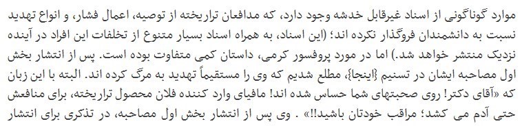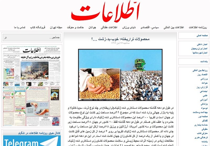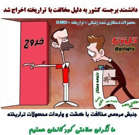 تصویر افشاگری خبرگزاری تسنیم از تهدید به مرگ یکی دیگر از دانشمندان، به دلیل روشنگری درباره محصولات تراریخته