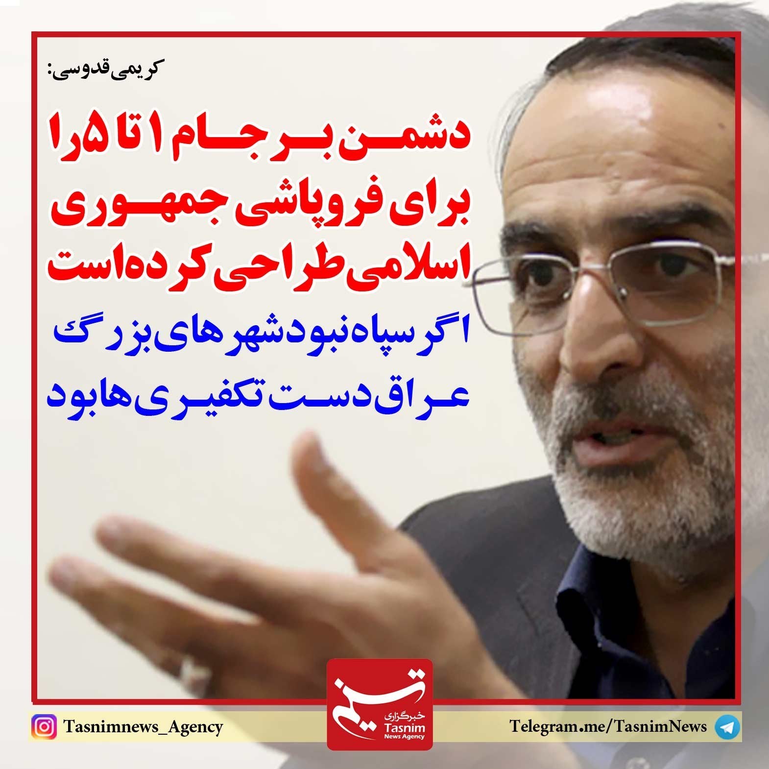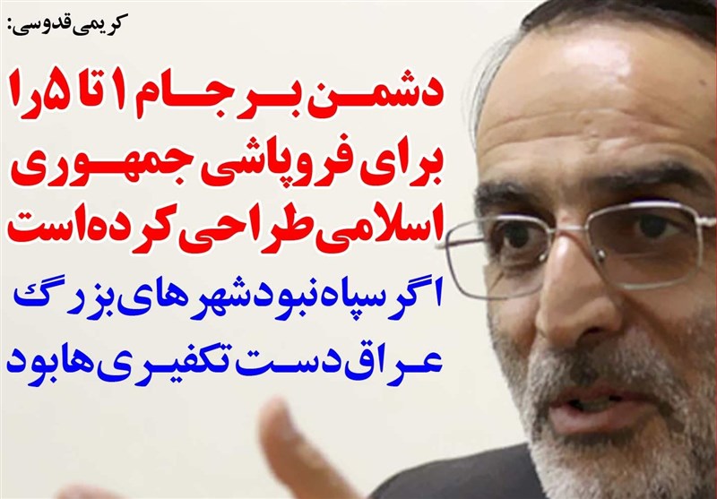 عضو مجمع نمایندگان خراسان‌رضوی با اشاره به اینکه دشمن در ادامه فتنه 88، برنامه‌های برجام 1 تا 5 را برای فروپاشی نظام جمهوری اسلامی در اتاق‌های فکر لندن، پاریس وغیره طراحی کرده است، گفت: اگر سپاه نبود شهرهای بزرگ عراق دست تکفیری‌ها بود.