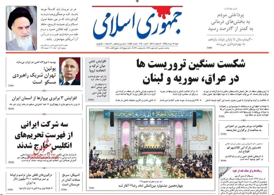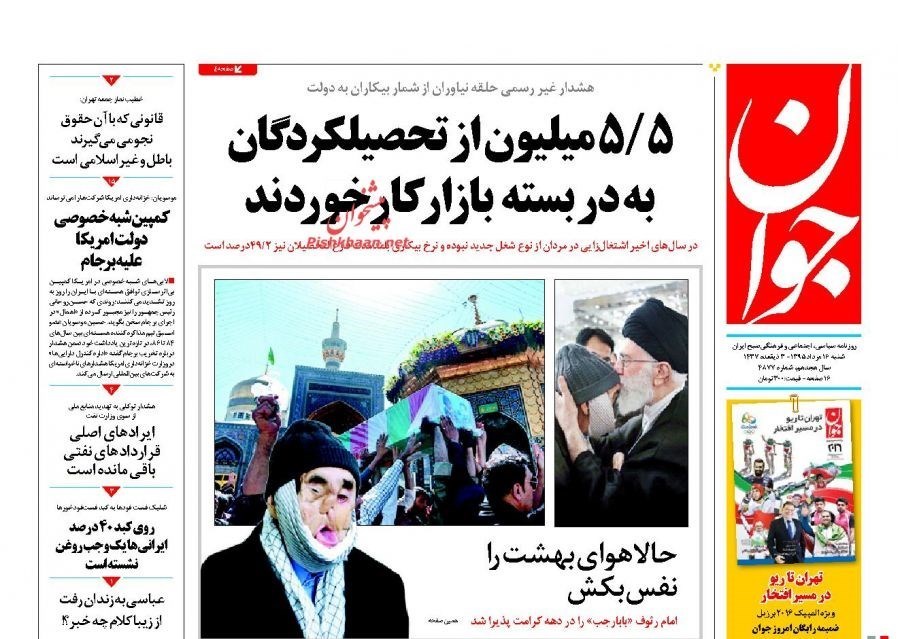 تصاویر صفحه اول روزنامه‌های شنبه 16 مرداد