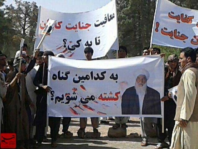 به گزارش خبرنگار دفتر منطقهای خبرگزاری تسنیم در هرات، مردم معترض شهرستان شیندند در اعتراض به افزایش ناامنی و ترور مولوی «محمد هاشم» رئیش شورای علمای این شهرستان، با حمل پلاکارد و پارچه نوشته از مقامات امنیتی هرات خواستار رسیدگی فوری این حادثه شدند.