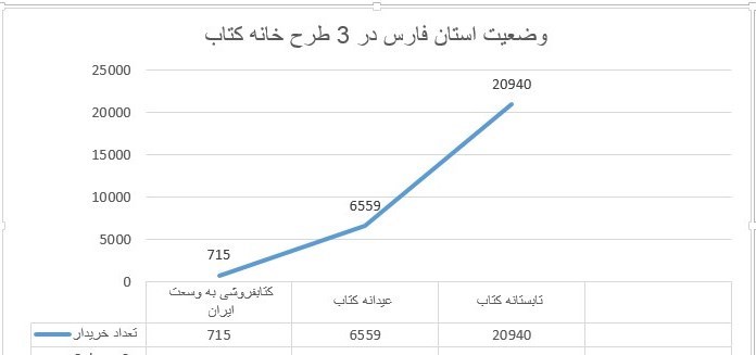 آماری که خانه کتاب ایران از طرحهای «کتابفروشی به وسعت ایران»، «عیدانه کتاب» و «تابستانه کتاب» به لحاظ تعداد کتابفروشیهای ثبت نامی و تعداد خریداران ارائه کرده نشان از رشد بیش از 3 برابری در استان فارس دارد که این امر قابل تقدیر و توجه است.