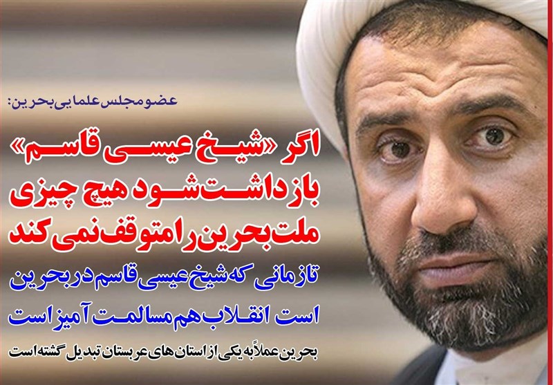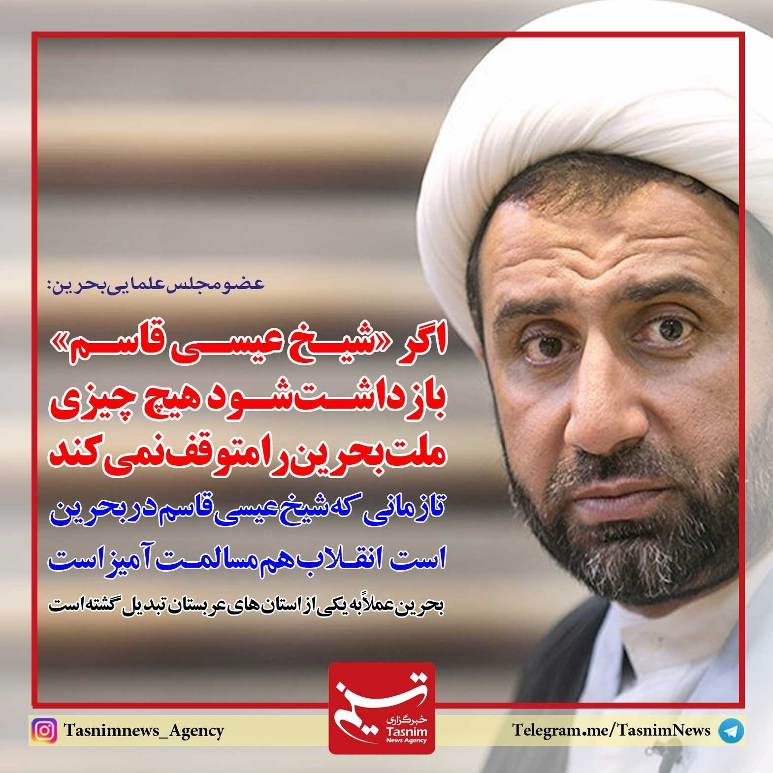 عضو مجلس علمایی بحرین که از این کشور تبعید شده تاکید کرد که اگر رژیم آل خلیفه شیخ عیسی قاسم را بازداشت کند در این صورت هیچ چیزی ملت بحرین را متوقف نخواهد کرد.