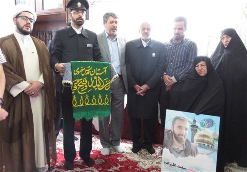 به گزارش خبرگزاری تسنیم از دامغان، خادمان حرم رضوی و حاملان پرچم سبز و مطهر بارگاه حضرت شمس الشموس علی بن موسی الرضا(ع) در قالب ویژه برنامه های کاروان زیر سایه خورشید بعدازظهر امروز با حضور در منزل شهید سعید علیزاده ضمن ادای احترام به جایگاه رفیع خانواده معظم این شهید والامقام مدافع حرم و گرامی داشت یاد و راه جاودان وی، عطر بارگاه ملکوتی و صفای زیارت مضجع شریف حضرت رضا(ع) را در مأمن پرورش این شهید بزرگوار جاری و ساری کردند.