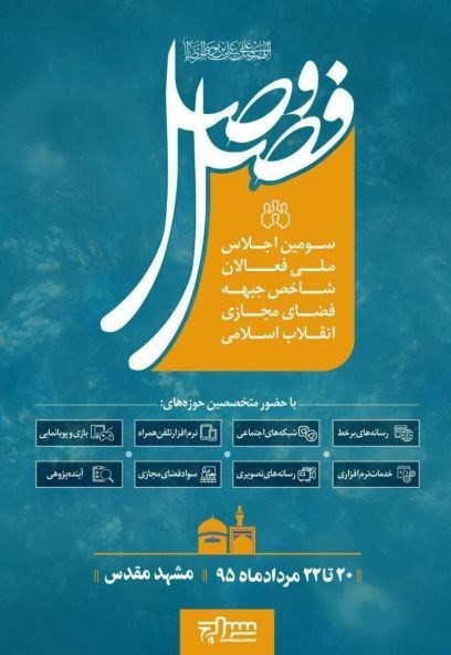 گفتنی است این اجلاس از تاریخ 20 لغایت 22 مرداد ماه 95 توسط سازمان فضای مجازی سراج در شهر مقدس مشهد برگزار خواهد شد.