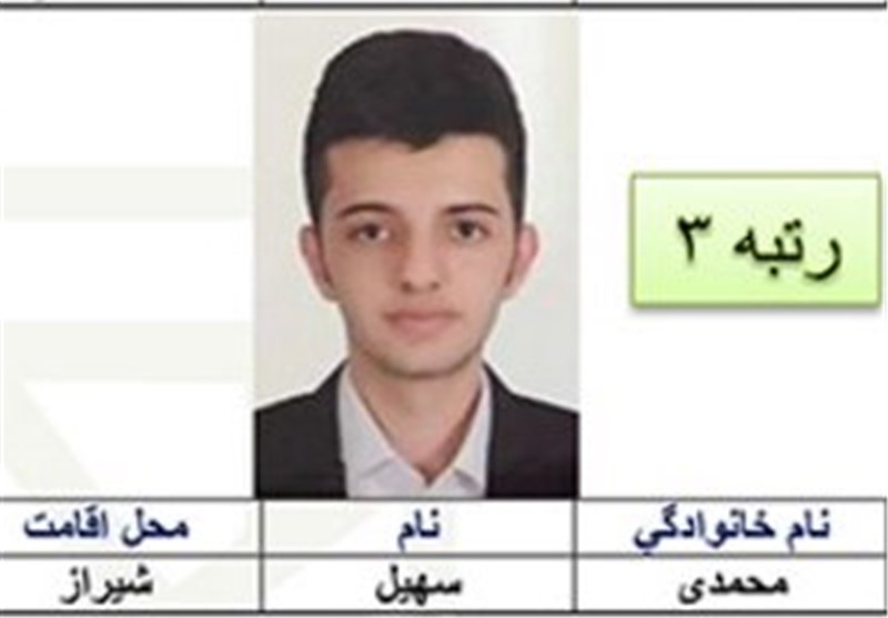 به گزارش خبرگزاری تسنیم از شیراز، اسامی نفرات برتر گروههای آزمایشی کنکور سراسری سال 95 از سوی سازمان سنجش اعلام شد و سهیل محمدی دانشآموز شیرازی رتبه سوم گروه آزمایشی علوم تجربی را به خود اختصاص داد.
