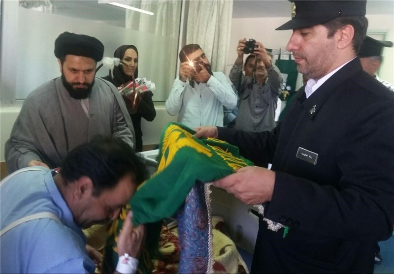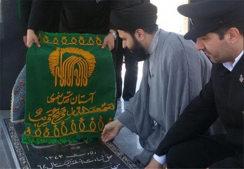 خادمان حرم رضوی نشان افتخار خادمی حضرت علی ابن موسی الرضا (ع) را به مادر شهید احمدرضایی اعطا کردند.