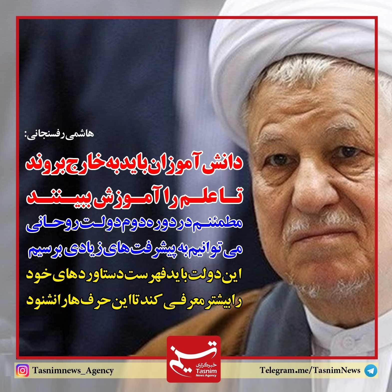 فوتوتیتر/ هاشمی رفسنجانی: دانش‌آموزان باید به خارج بروند تا علم را آموزش ببینند
