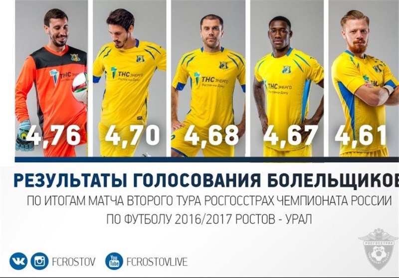 به گزارش خبرگزاری تسنیم، سایت رسمی باشگاه روستوف پس از پایان بازی هفته دوم لیگ برتر روسیه برابر تیم اورال با برگزاری یک نظرسنجی از هواداران این تیم خواست تا بهترین بازیکن روستوف در این بازی را انتخاب کنند.