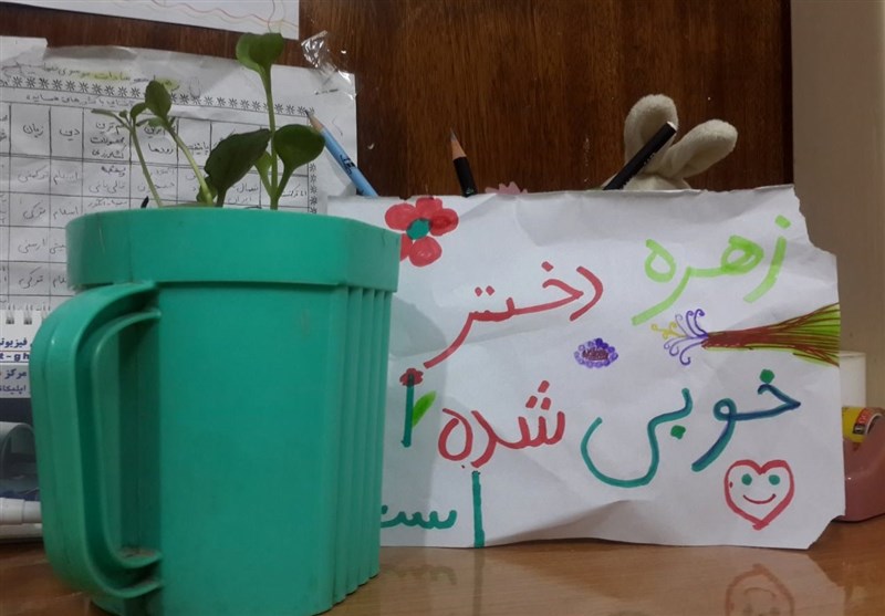 یکدفعه چشمم به نقاشی روی در میخورد؛ زهرا آن را نقاشی کرده و نوشته «خدایا زودتر پدرم را آزاد کن». همین بهانه خوبی است تا از او بخواهیم بیاید و قدری با هم صحبت کنیم.