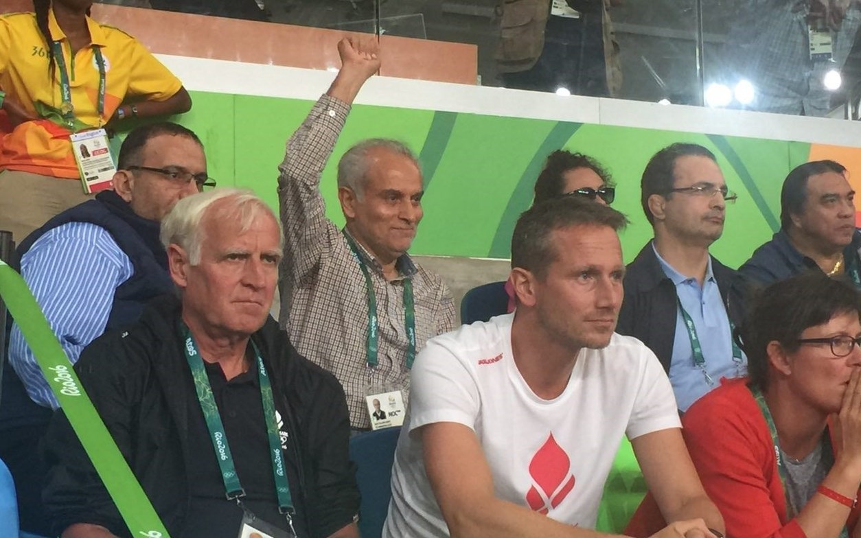 معاون ورزش قهرمانی و حرفه‌ای وزارت ورزش و جوانان بعد از دستیابی سعید عبدولی به مدال برنز المپیک 2016 با بالا بردن دست خود خوشحالی‌اش را نشان داد.