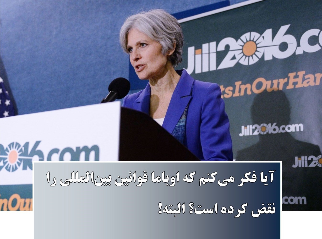 زمانی که از استاین پرسیدند آیا اوباما را جنایتکار جنگی میداند، پاسخ داد: «آیا فکر میکنم که وی قوانین بینالمللی را نقض کرده است؟ البته!»