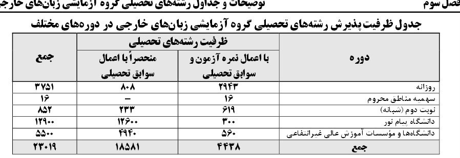از مجموع 155 هزار و 679 ظرفیت موجود در گروه تجربی،سهمیه دوره روزانه 47 هزار و996 نفر است و سهم پذیرش در دانشگاههای پولی 107 هزار و 476 نفر است.