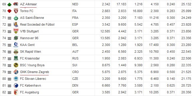 تیم دینامو زاگرب کرواسی که اخیراً علی کریمی را از سپاهان اصفهان بهخدمت گرفته است، دومین تیم برتر لژیونرهای ایرانی قاره اروپا محسوب میشود. شاگردان کرانچار با امتیاز 21.525 در رده هفتادونهم رنکینگ یوفا قرار دارند.