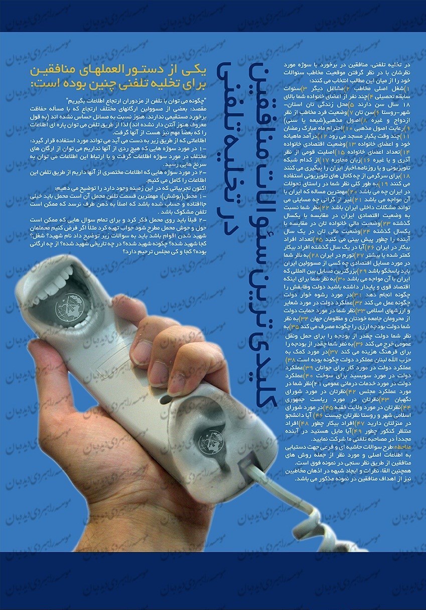 پوستر زیر به کلیدی ترین سوالات منافقین برای تخلیه تلفنی اشاره دارد: