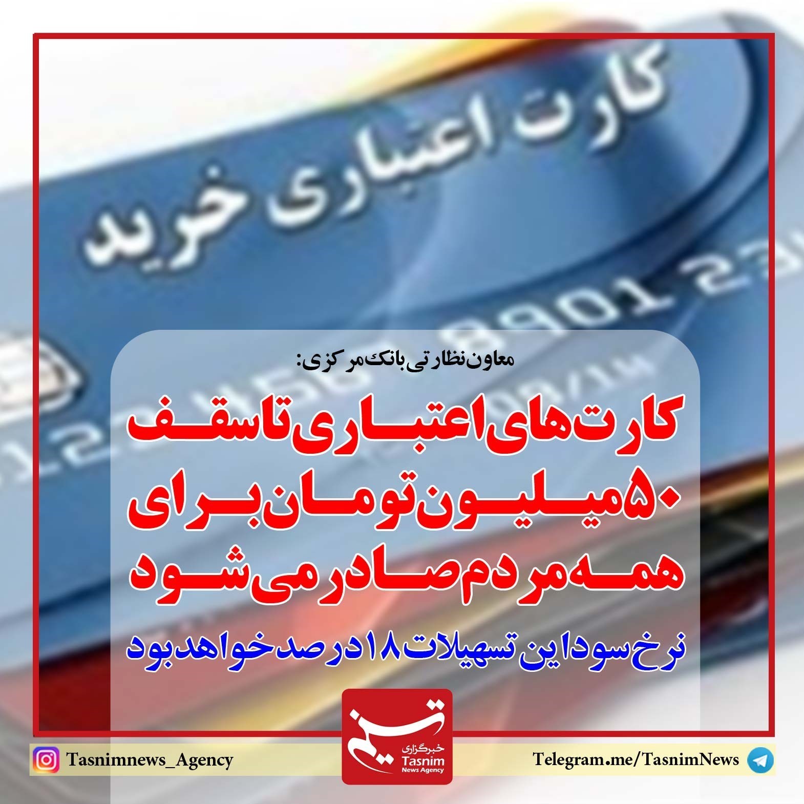 فوتوتیتر/معاون نظارتی بانک مرکزی:کارت های اعتباری تا سقف 50 میلیون تومان برای همه مردم صادر می شود