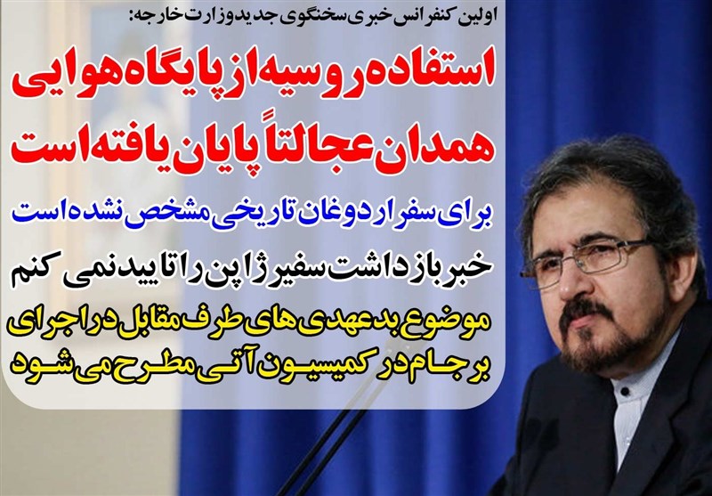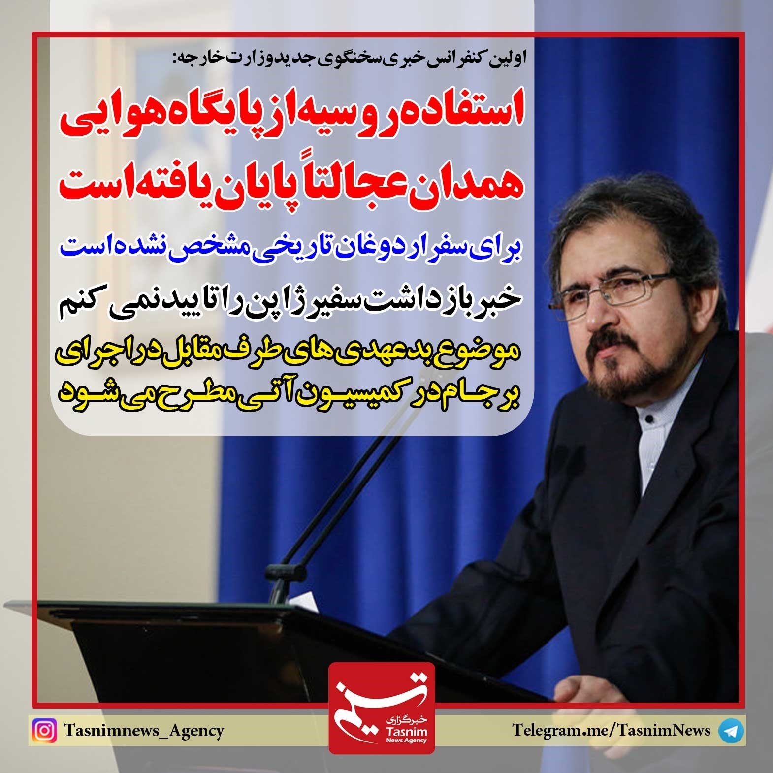 سخنگوی وزارت خارجه ایران در اولین کنفرانس خبری خود در پاسخ به خبرنگار تسنیم گفت که استفاده روسیه از پایگاه هوایی همدان عجالتا پایان یافته است.