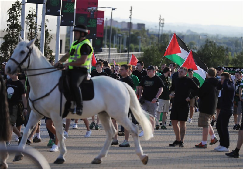 صدها هوادار سلتیک چهارشنبه هفته گذشته قبل و در جریان بازی تیم محبوبشان برابر نماینده رژیم اشغالگر قدس در دور رفت پلیآف لیگ قهرمانان اروپا، در خارج و داخل ورزشگاه سلتیکپارک، پرچم فلسطین را به اهتزاز درآوردند که این حرکت آنها از سوی یوفا یک اقدام سیاسی و غیرورزشی قلمداد و منجر به جریمه باشگاه سلتیک شد.