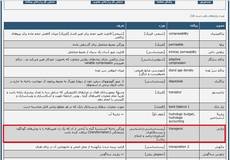 به گزارش خبرنگار اقتصادی خبرگزاری تسنیم، در جلسه گذشته فرهنگستان زبان و ادب فارسی، پس از بحث و تبادل نظر مفصل درخصوص محصولات دستکاری ژنتیکی، «تراژن» به عنوان واژه مختص این محصولات انتخاب شد. مصوبه را {اینجا} ببینید.