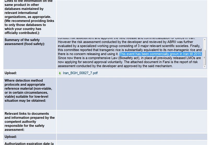 بنابر گزارش مرکز تحقیقات استراتژیک مجمع تشخیص مصلحت نظام ــ که در تیرماه 85 منتشر شد ــ برنج تراریخته از سال 1384 در سطح مزارع کشور بهصورت انبوه کشت شده و صدها کشاورز به تولید آن اشتغال پیدا کردهاند، اما نهادهای ناظر بهکلی منکر این موضوع هستند.