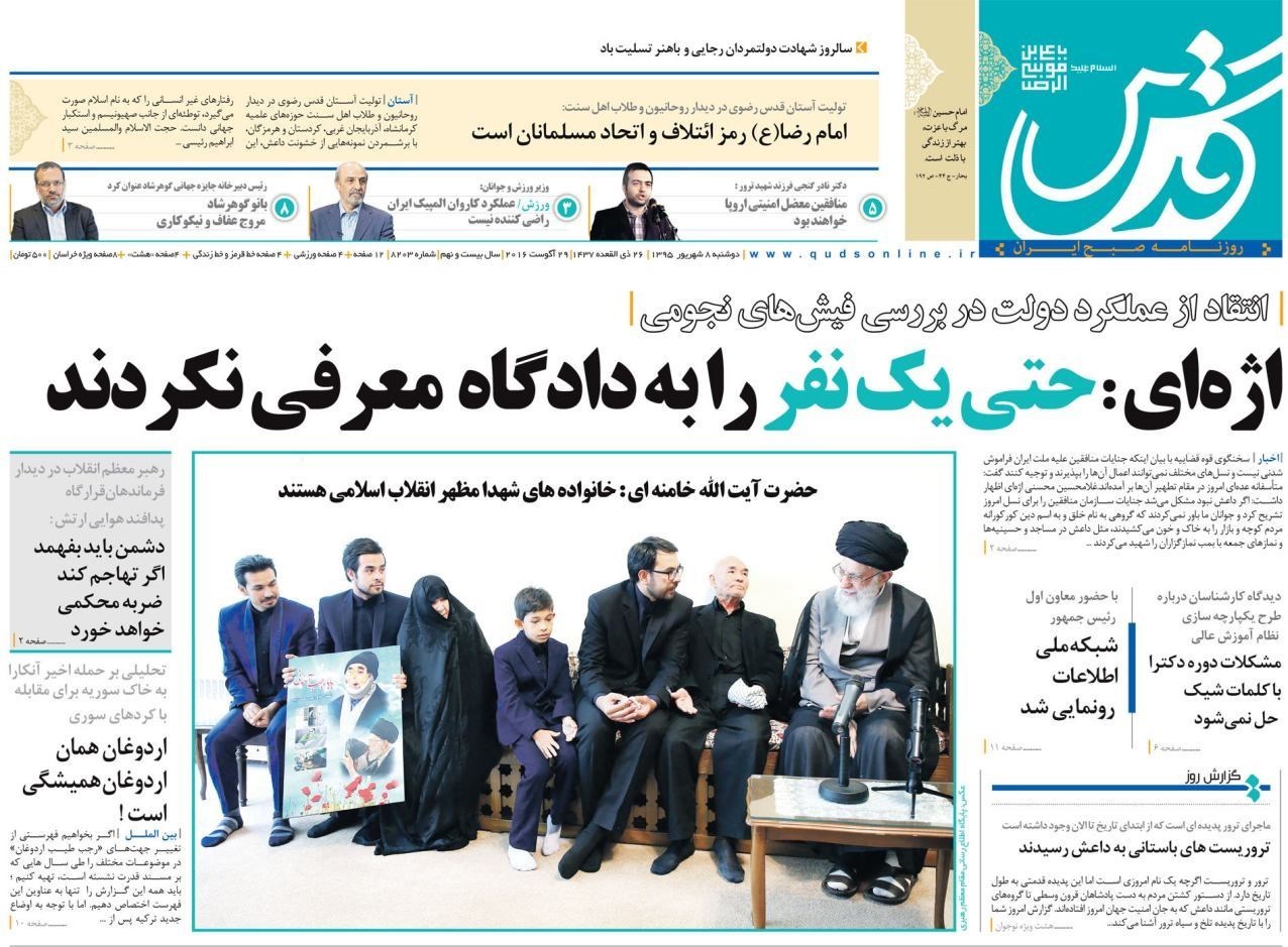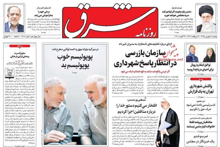تصاویر صفحه اول روزنامه‌های دوشنبه 8 شهریور
