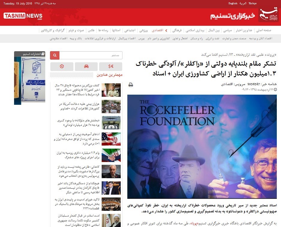 تصویر گزارش «مستند ویژه تسنیم از ردپای «راکفلر» در کشاورزی ایران/ 3مدال طلای کشاورزی ایران بر گردن چهکسانی است؟» {اینجا}