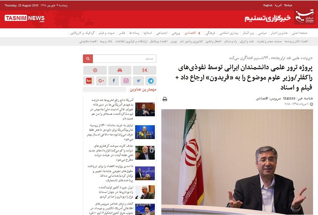 تصویر گزارش «پروژه ترور علمی دانشمندان ایرانی توسط نفوذیهای راکفلر/وزیر علوم موضوع را به «فریدون» ارجاع داد + فیلم و اسناد» {اینجا}
