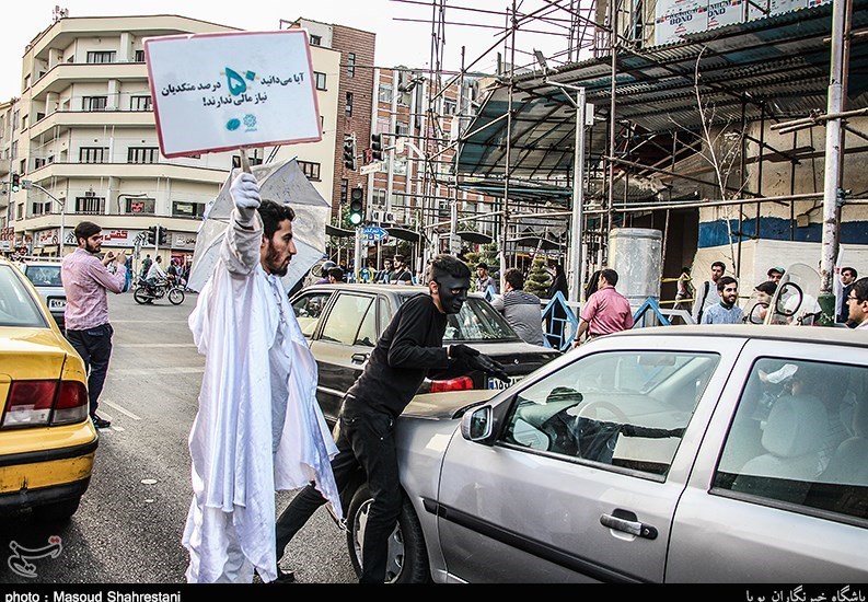 به گزارش خبرنگار اجتماعی باشگاه خبرنگاران تسنیم؛ افرادی در قالب اکیپی با شمایل سفیدپوشش و افرادی با لباس سیاه و نقاب بر چهره در قامت متکدی با استقرار در برخی از معابر و خیابانهای اصلی و پرتردد شهر تهران، مبادرت به تبلیغ و فرهنگسازی برای عدم پرداخت پول به متکدیان سطح شهر کردهاند.