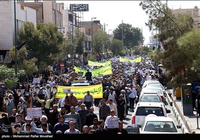 راهپیمایی امروز تا خیابان قیام انجام شد و بیانیه مردم یزد در محکومیت جنایتهای آل‌سعود در این راهپیمایی با سردادن شعارهای کوبنده "الله اکبر" قرائت شد.