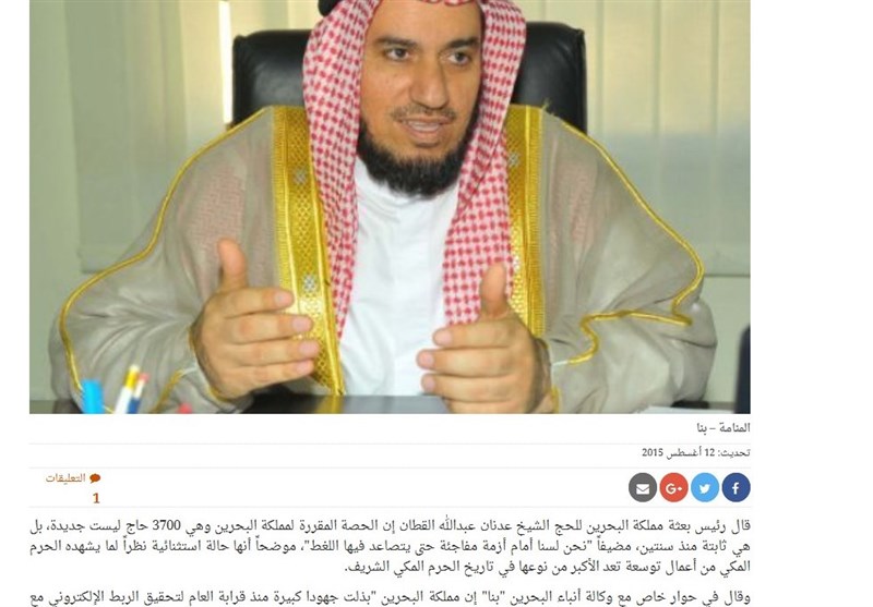 مقامات آلخلیفه اعتراف کرده بودند که حکومت سعودی سهمیه حج آنها را تا هشتهزار نفر هم رسانده بود یعنی بیش از پنج برابر سهمیه مصوب