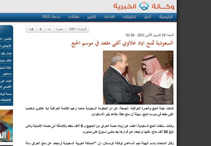 حکومت سعودی با توجه به سرسپردگی و وفاداری ایاد علاوی دوهزار سهمیه حج به وی اختصاص داده بود