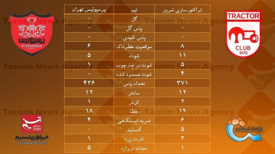 آمار این بازی نشان میدهد که تراکتورسازی در خانه خود تیم برتر میدان بوده و نسبت به صدرنشین کنونی لیگ موقعیتهای بیشتری برای گشودن دروازه حریف داشته، هرچند در نهایت از آنها استفاده نکرد.
