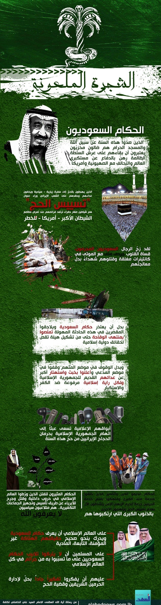 به گزارش گروه بین الملل خبرگزاری تسنیم به نقل از پایگاه خبری العهد، لقب شجره ملعونه مصداق روشنی برای حاکمان سعودی است که سخت در تلاش برای دنباله روی از آمریکا و صهیونیستها هستند.